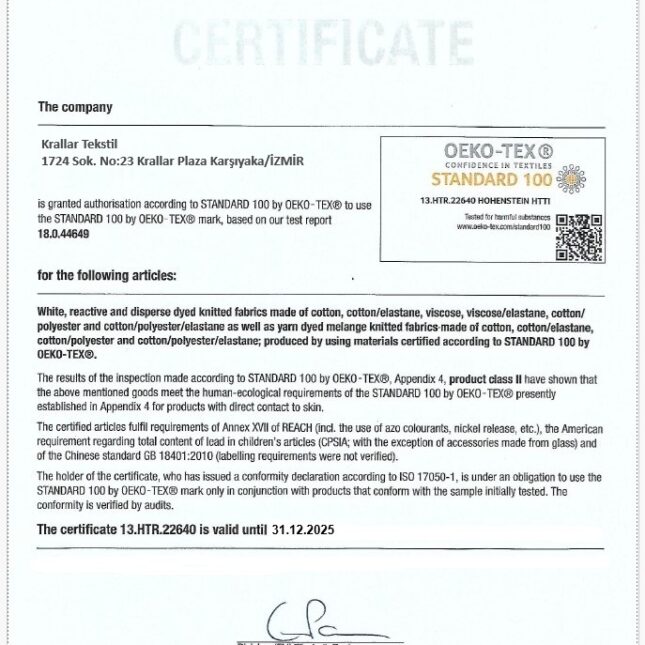 ✅ OEKO-TEX Sertifikalı, terletmeyen kumaş,